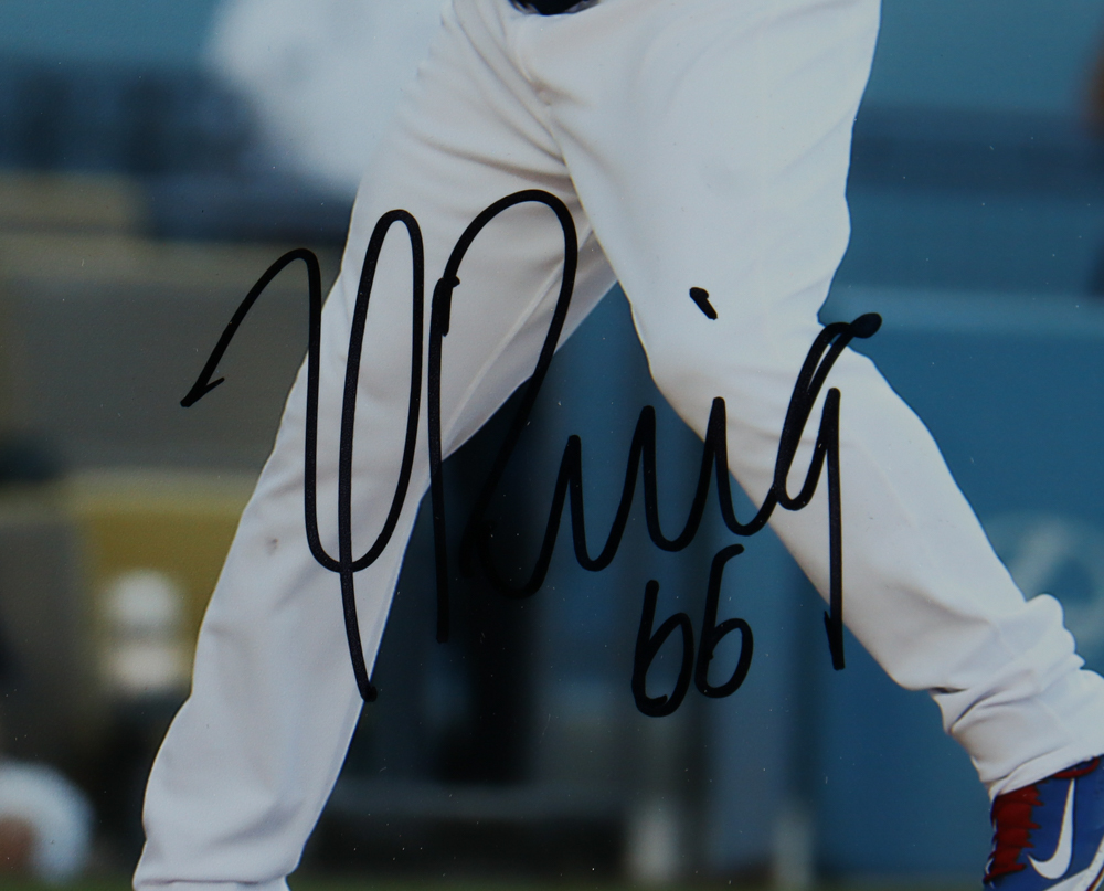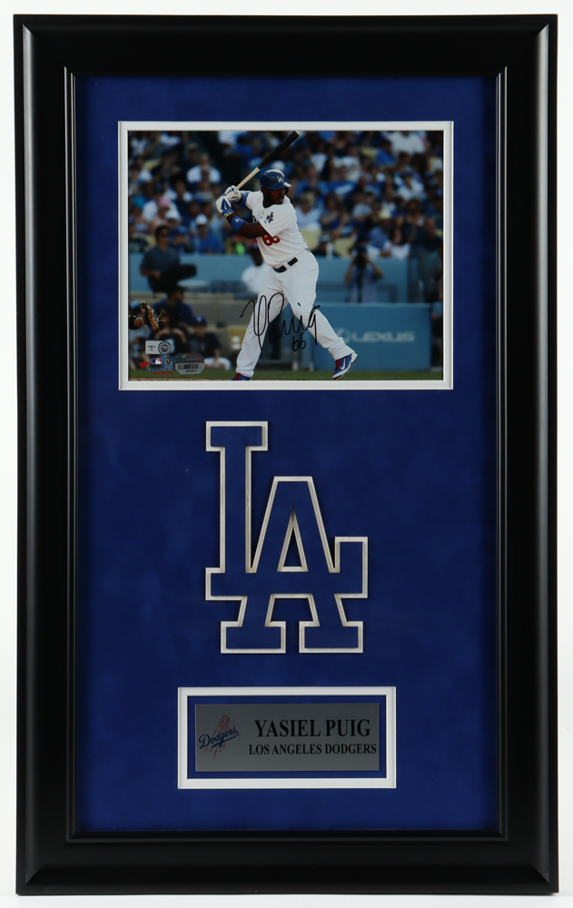 Custom frame measures 16" x 26" in size. Hand-signed by Yasiel Puig (Los Angeles Dodgers).