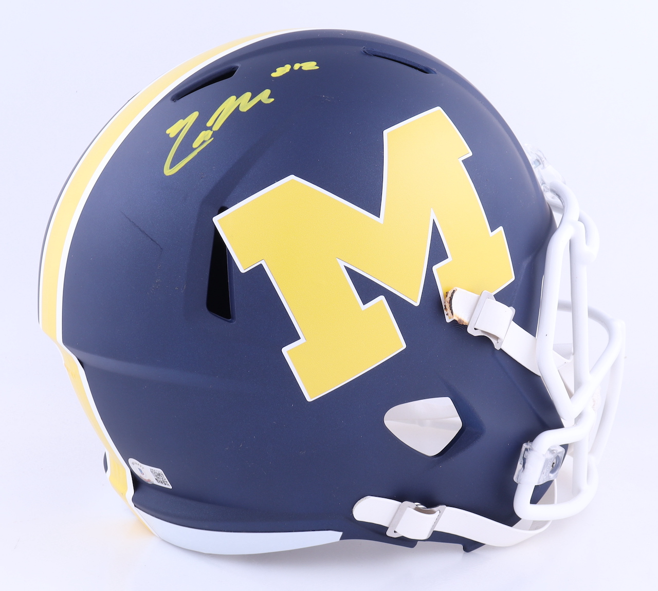 Riddell Michigan Wolverines Full-Size Replica Matte Navy Speed Helmet. Hand-signed by Cade McNamara. Please note, there is residue on the back of the helmet.