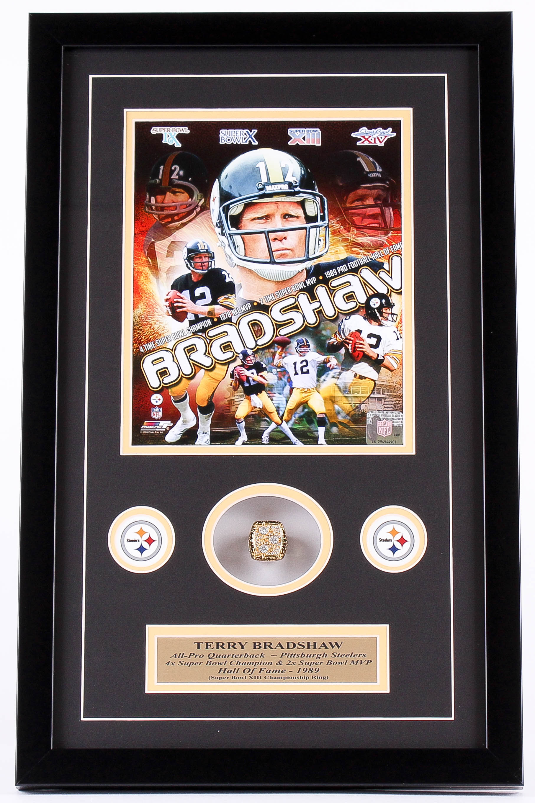 Terry Bradshaw Steelers 13x21 Custom Framed Super Bowl XIII Championship Ring Display