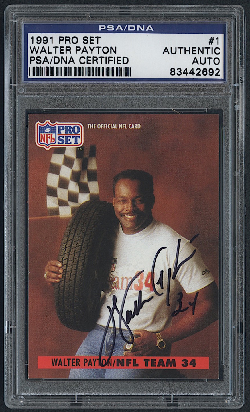 Walter Payton Signed 1991 Pro Set #1 Football Card (PSA Encapsulated)