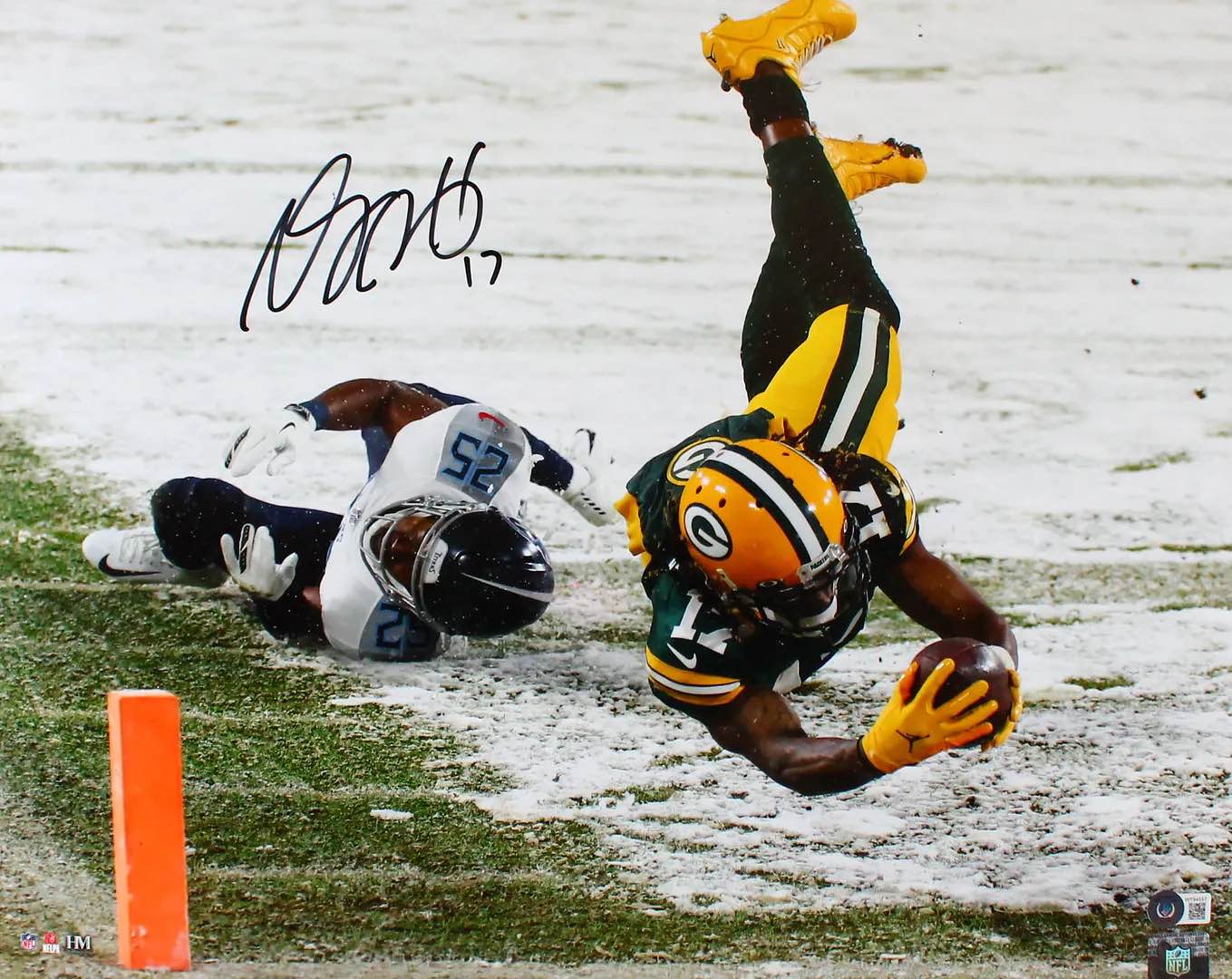Photo measures 16" x 20" in size and has been hand-signed by Davante Adams (Green Bay Packers).