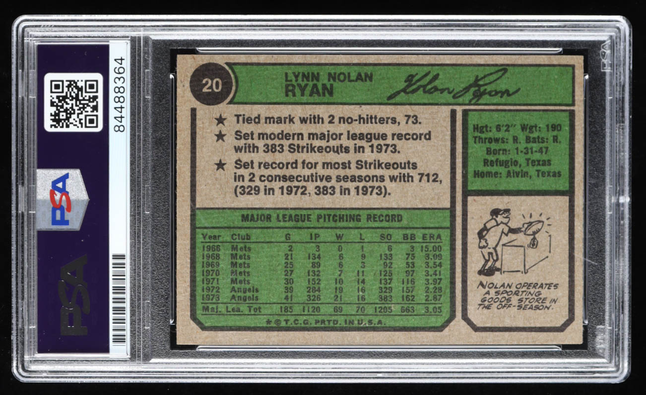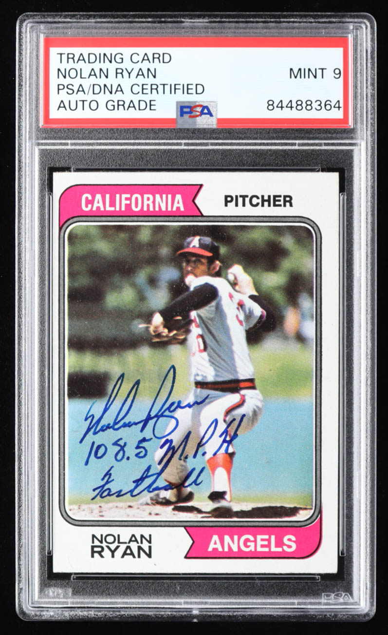 Nolan Ryan Signed 1974 Topps #20 Inscribed "108.5 M.P.H. Fastball" (PSA)