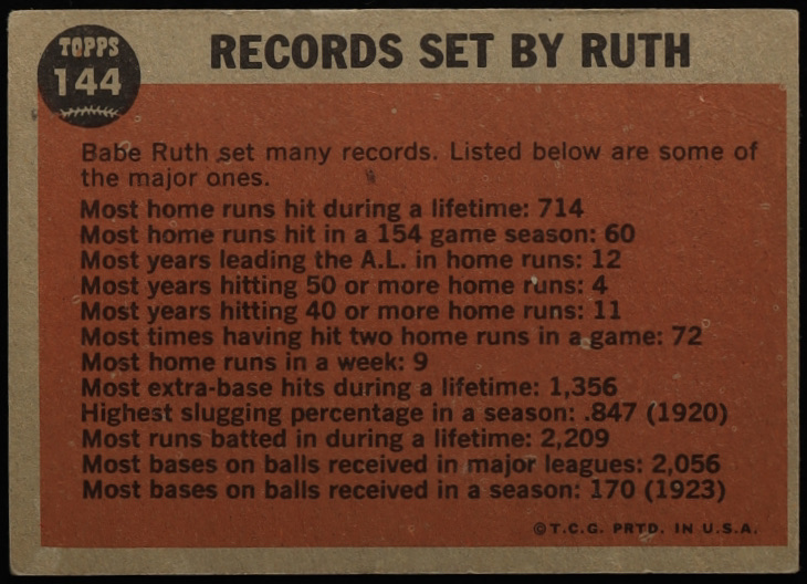 Babe Ruth 1962 Topps #144 Special 10 / Farewell Speech