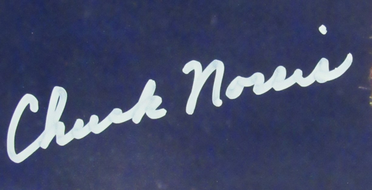 Photo measures 11" x 14" in size and has been hand-signed by Chuck Norris.