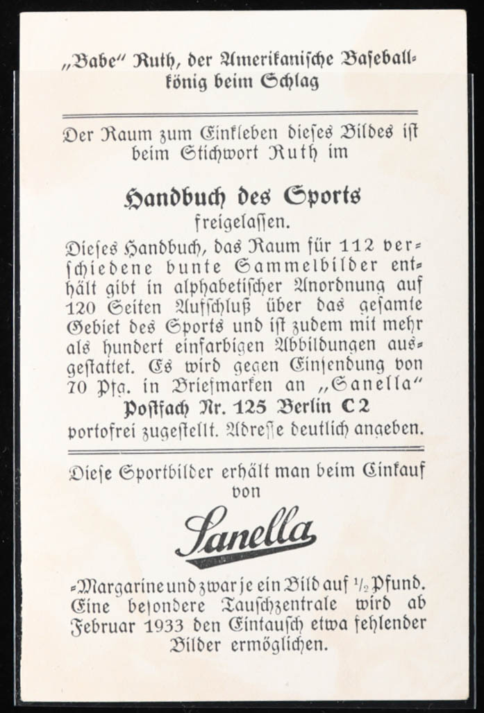 Babe Ruth 1932 Sanella Margarine #83B Type 2 / Sanella at Bottom