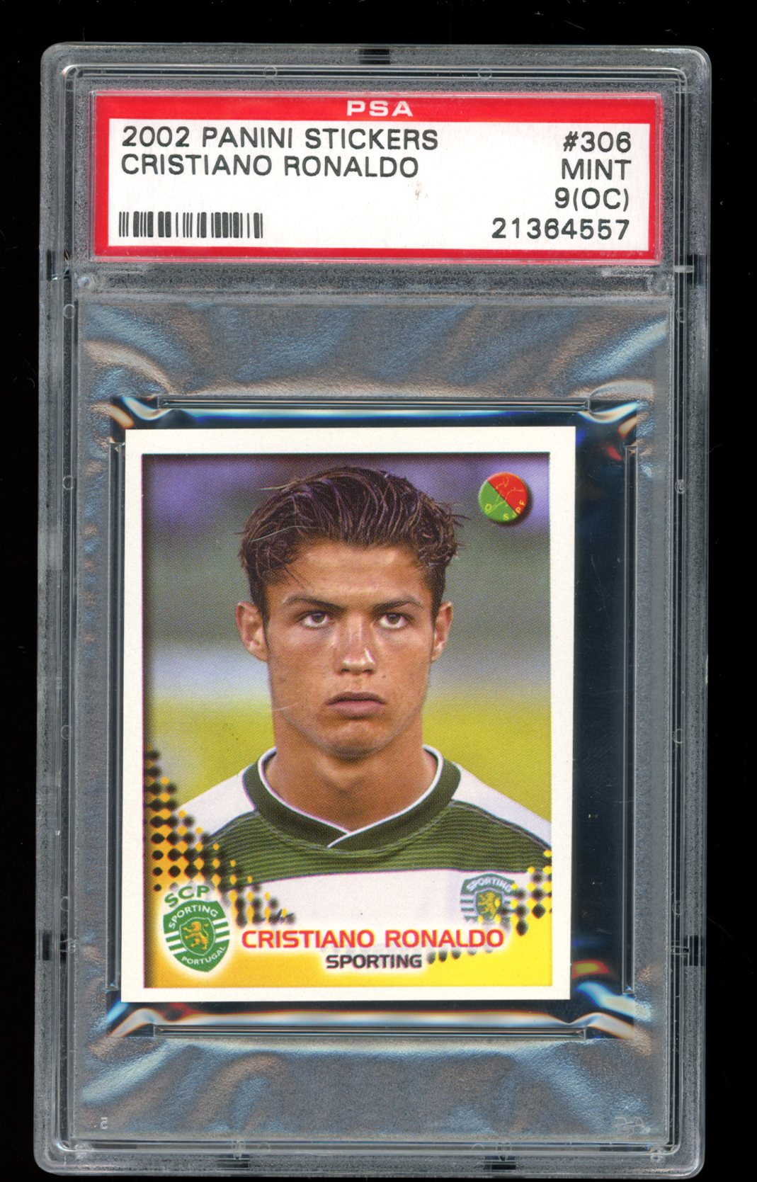 Cristiano Ronaldo 2002-03 Panini Futebol Portugal Stickers #306 RC (PSA 9) (OC)
