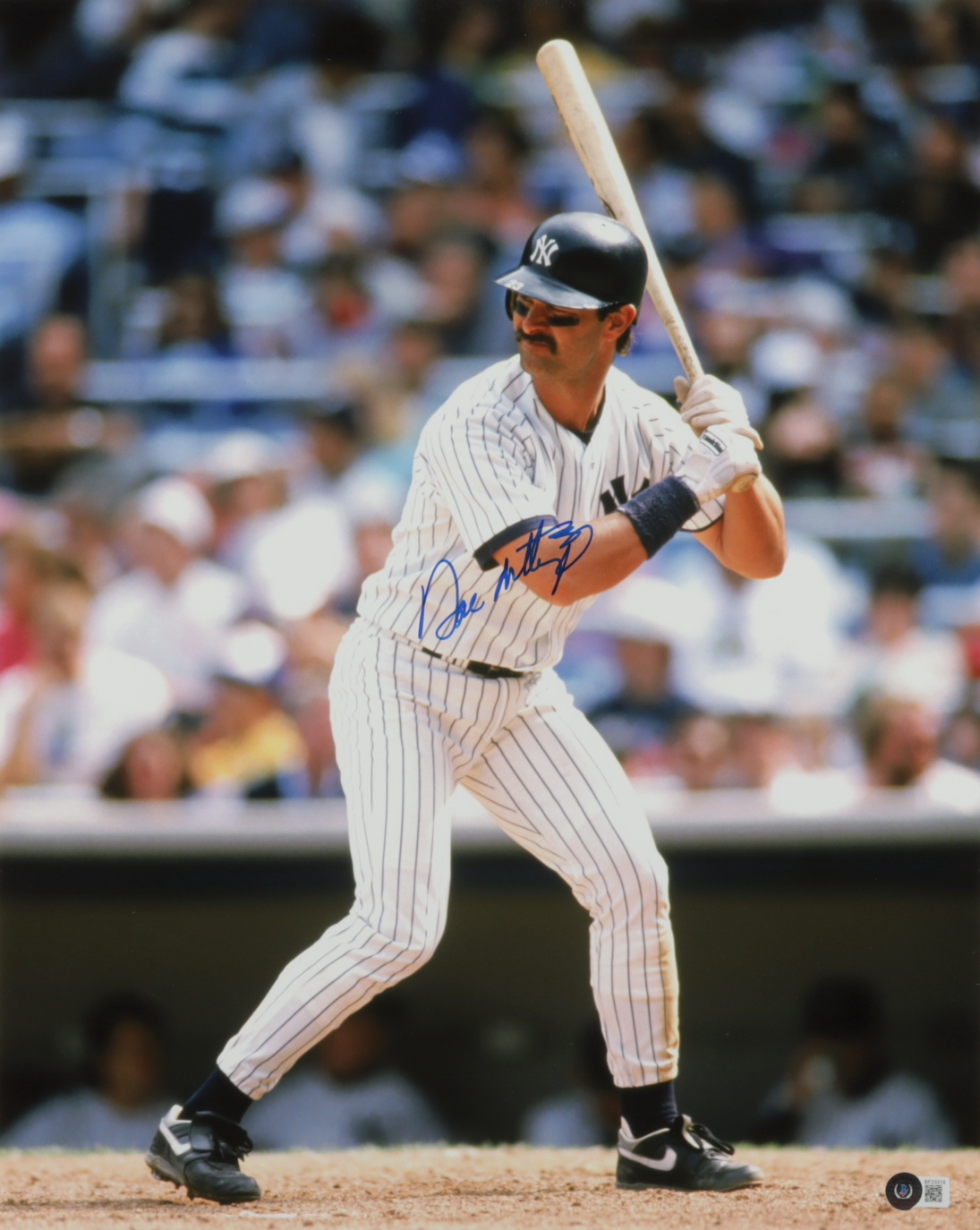 Photo measures 16" x 20" in size and has been hand-signed by Don Mattingly (New York Yankees).