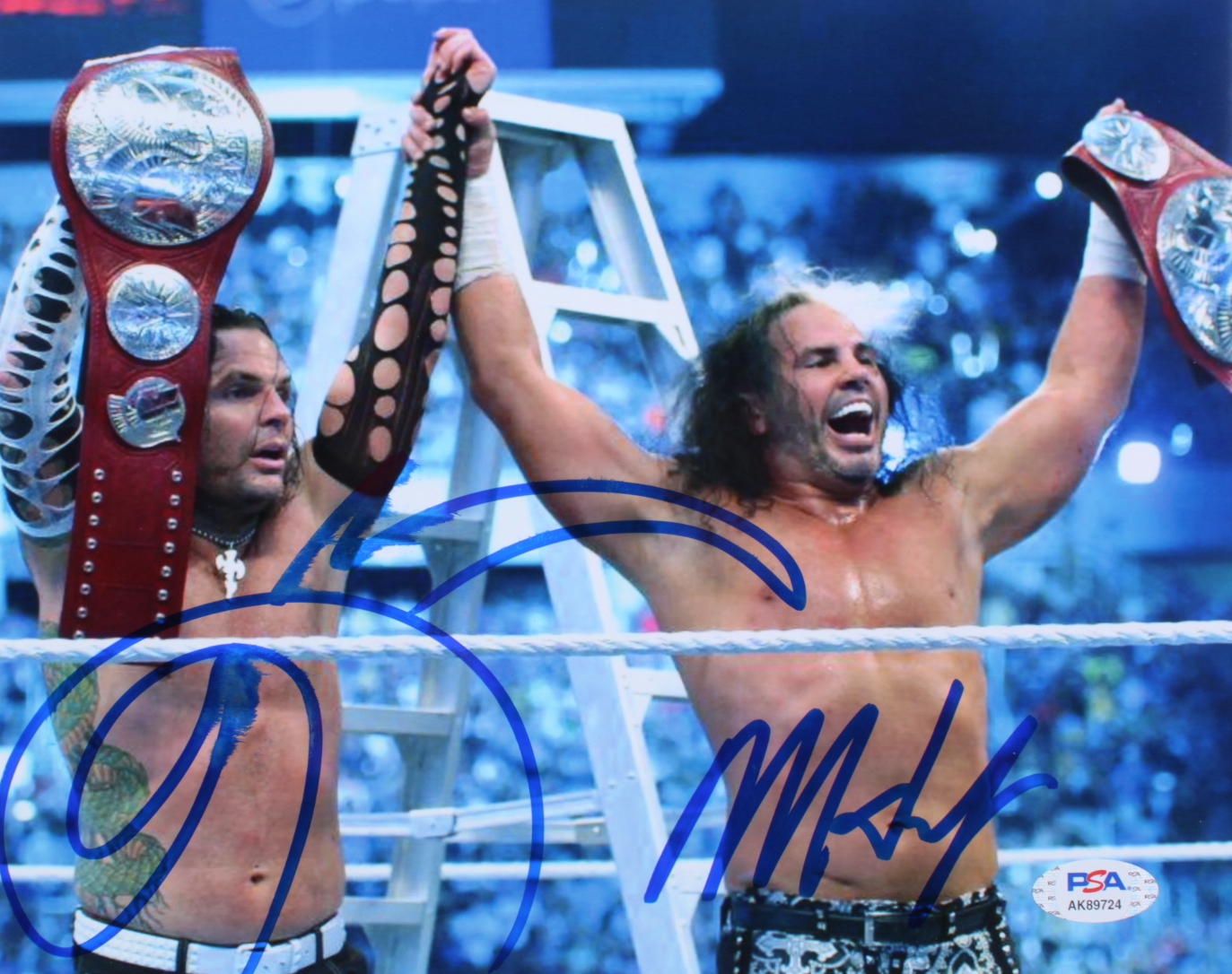 Photo measures approximately 8" x 10" in size and has been hand-signed by Jeff Hardy and Matt Hardy.