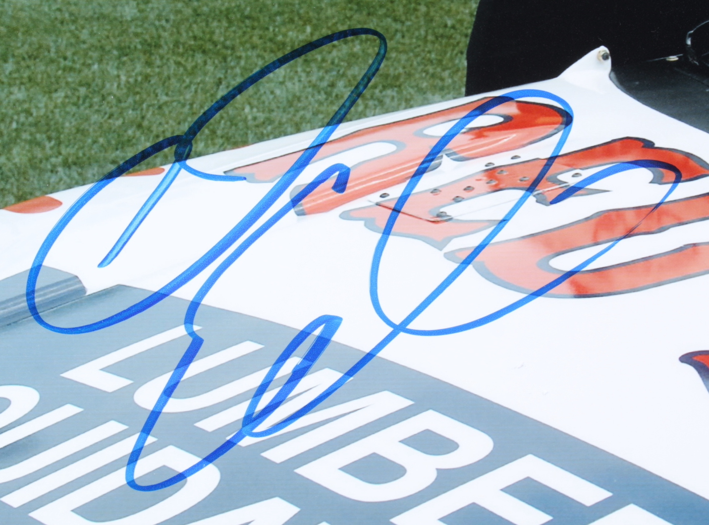 Photo measures 11" x 14" in size. Hand-signed by Carl Edwards.