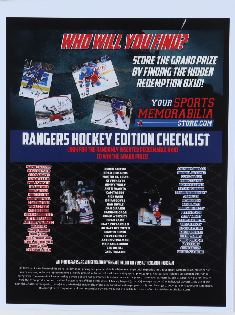 Each New York Rangers 8x10 Mystery Box has a photo of a CURRENT or FORMER Rangers Player!! Each Mystery Box is a random pre-packaged Rangers 8x10 photo.
