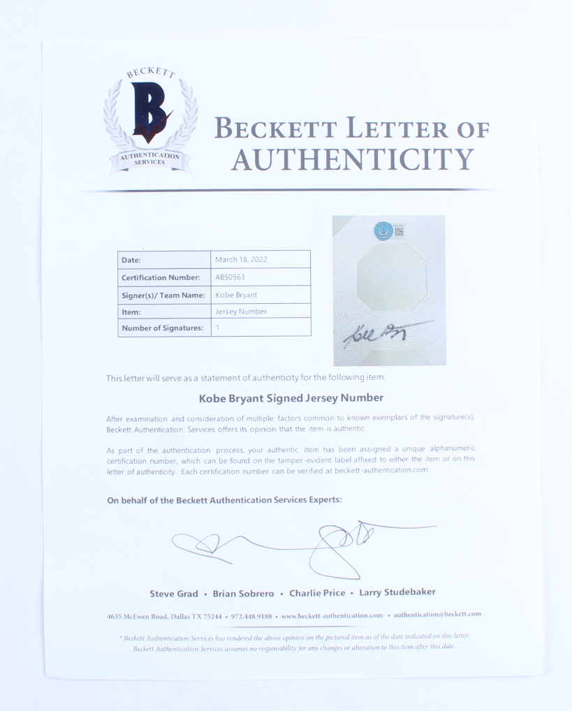 Kobe Bryant Signed Jersey (Beckett & PSA)