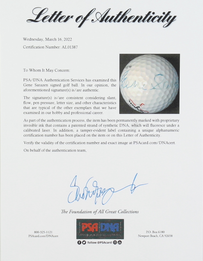 Gene Sarazen Signed Golf Ball (PSA)