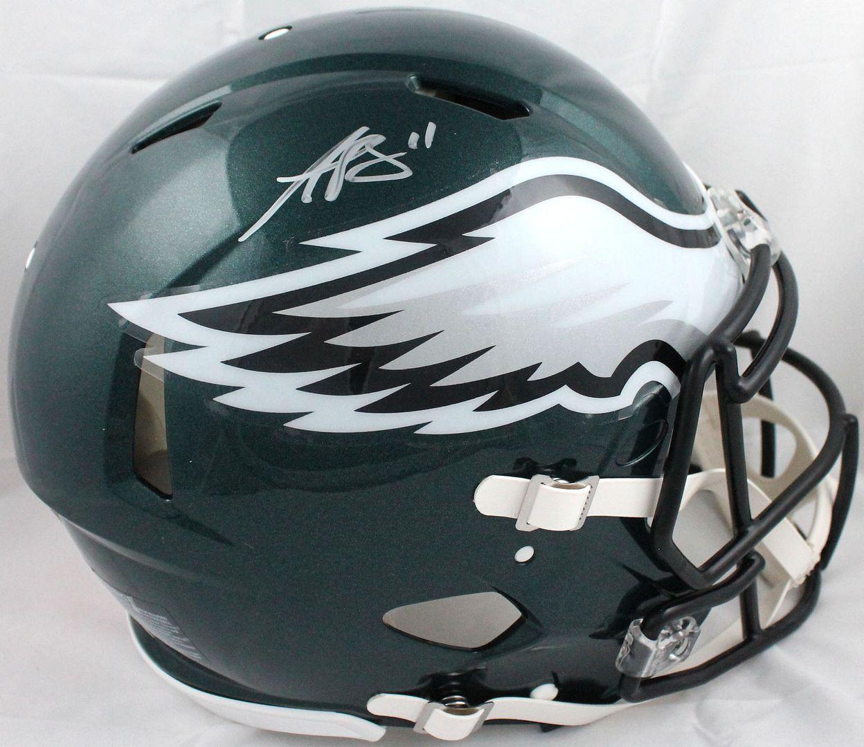 Riddell Philadelphia Eagles Full-Size Authentic On-Field Speed helmet. Hand-signed by A. J. Brown.