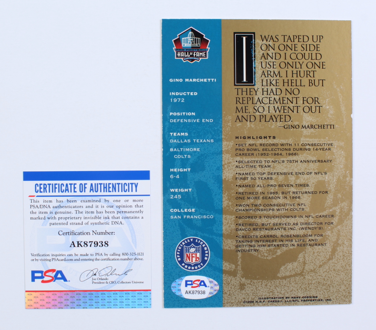 Gino Marchetti Signed Hall of Fame Signature Series Card (PSA)
