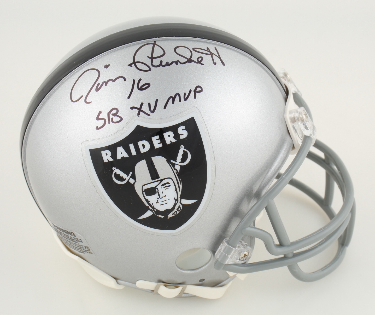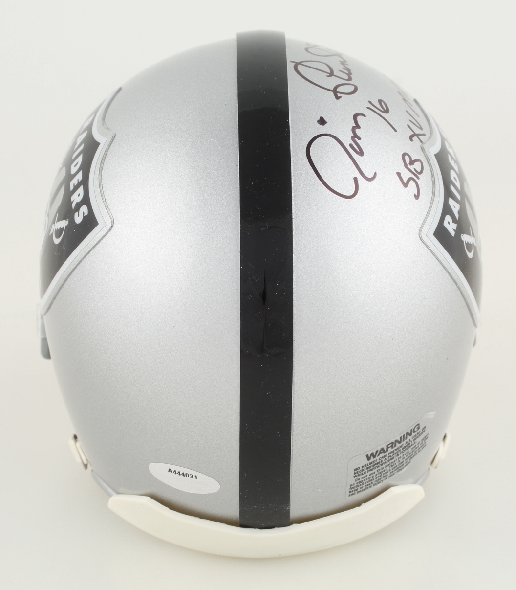 Riddell Los Angeles Raiders mini helmet. Hand-signed and inscribed by Jim Plunkett.