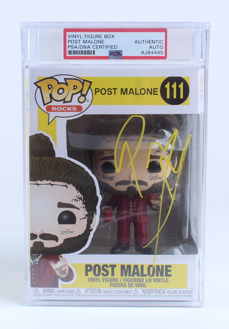 Funko Pop! vinyl figure measures approximately 4" tall and has been hand-signed on the packaging by Post Malone.