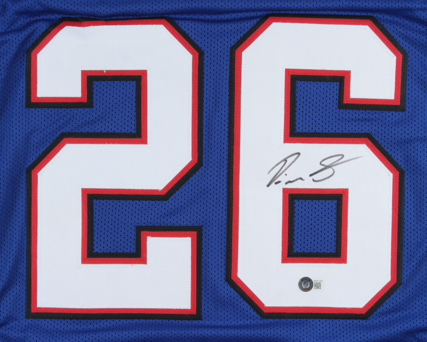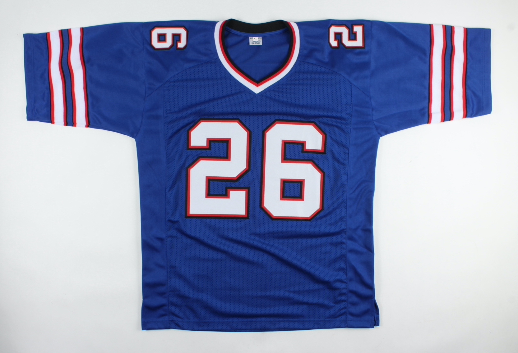 Custom on-field style jersey. Everything sewn on, size XL. Hand-signed by Devin Singletary.