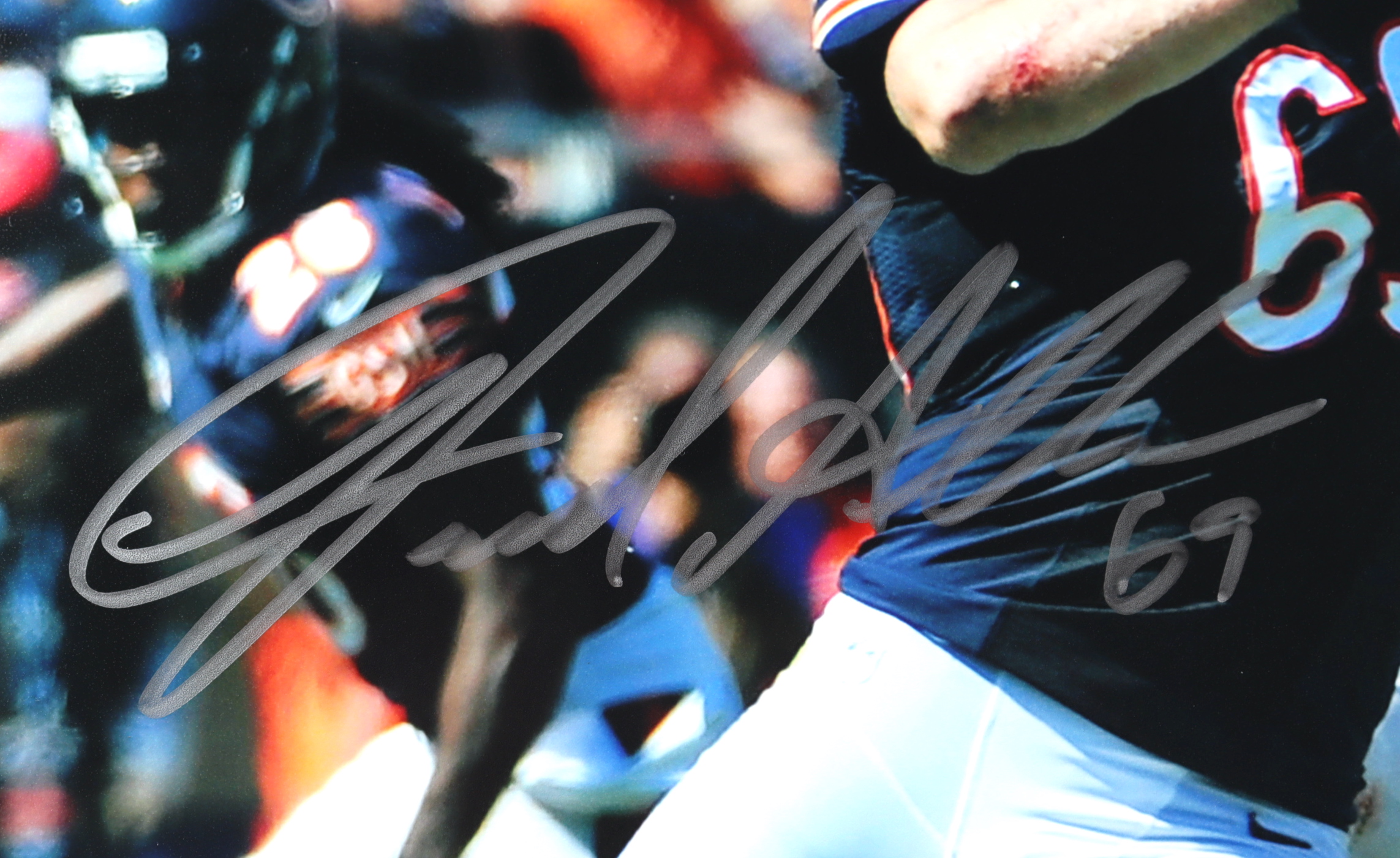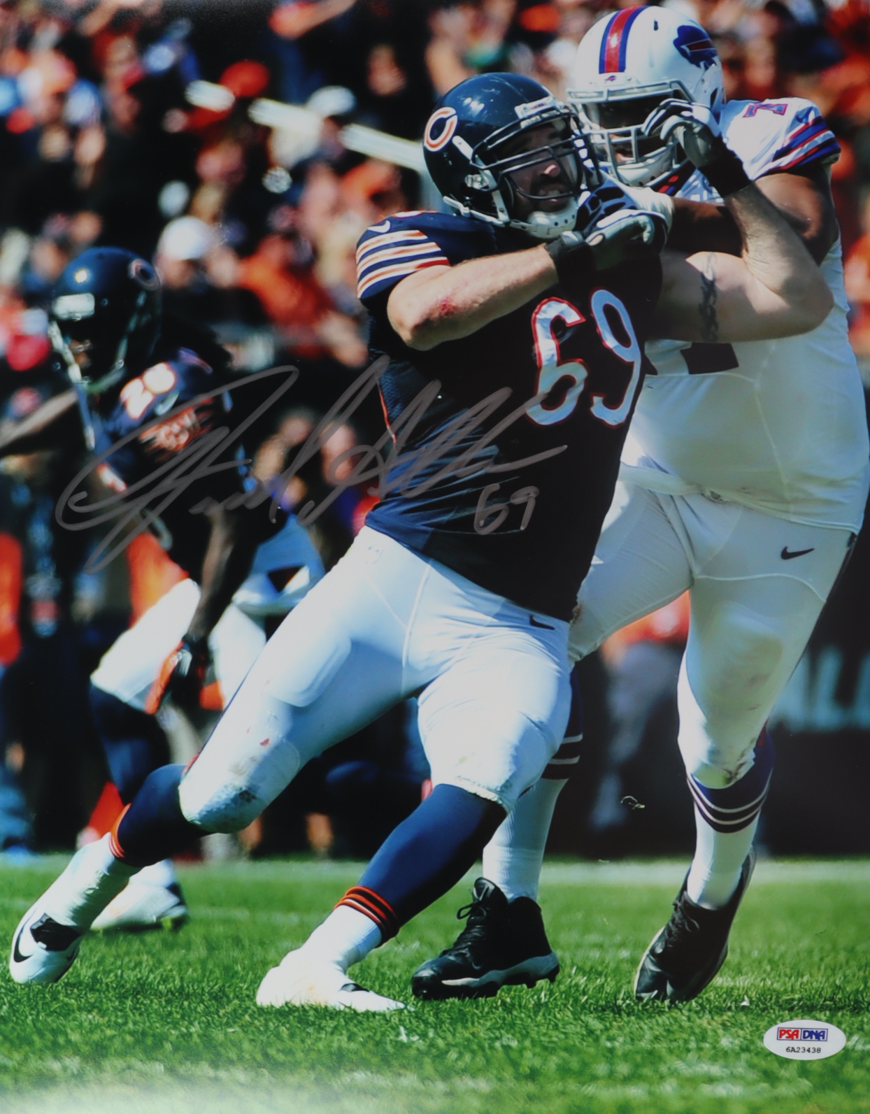 Photo measures 11" x 14" in size. Hand-signed by Jared Allen (Chicago Bears).