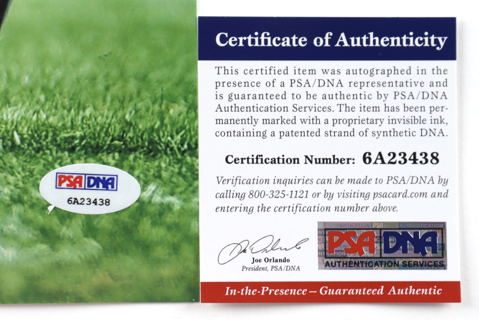 The lot / autograph(s) includes an official PSA/DNA hologram and matching COA for authenticity purposes. The signing of this item was witnessed by PSA.
