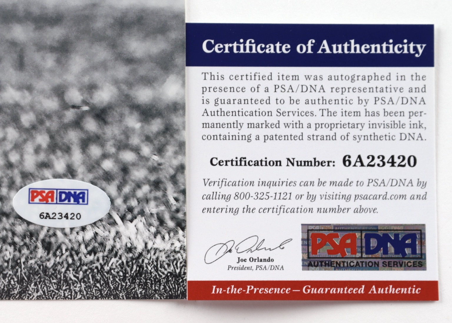 The lot / autograph(s) includes an official PSA/DNA hologram and matching COA for authenticity purposes. The signing of this item was witnessed by PSA.