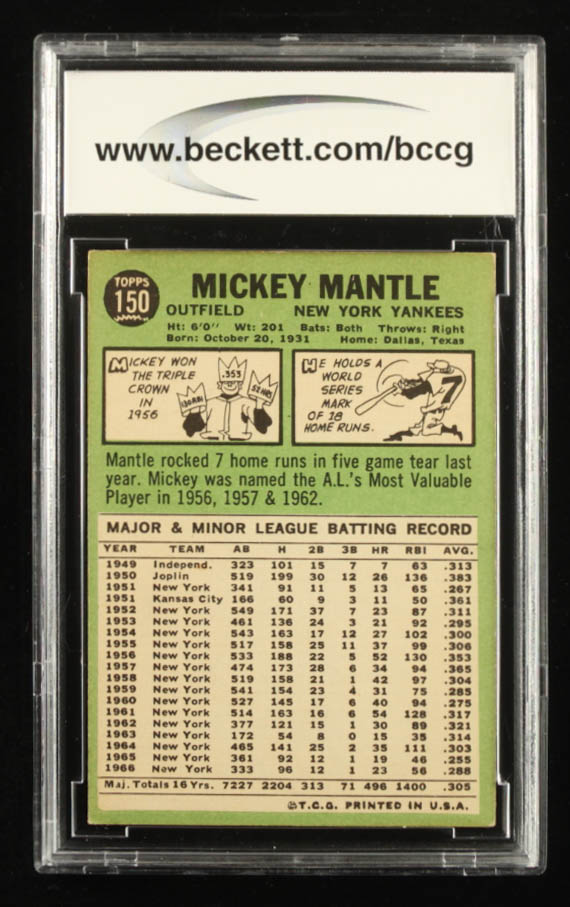 Mickey Mantle 1967 Topps #150 (BCCG 8)