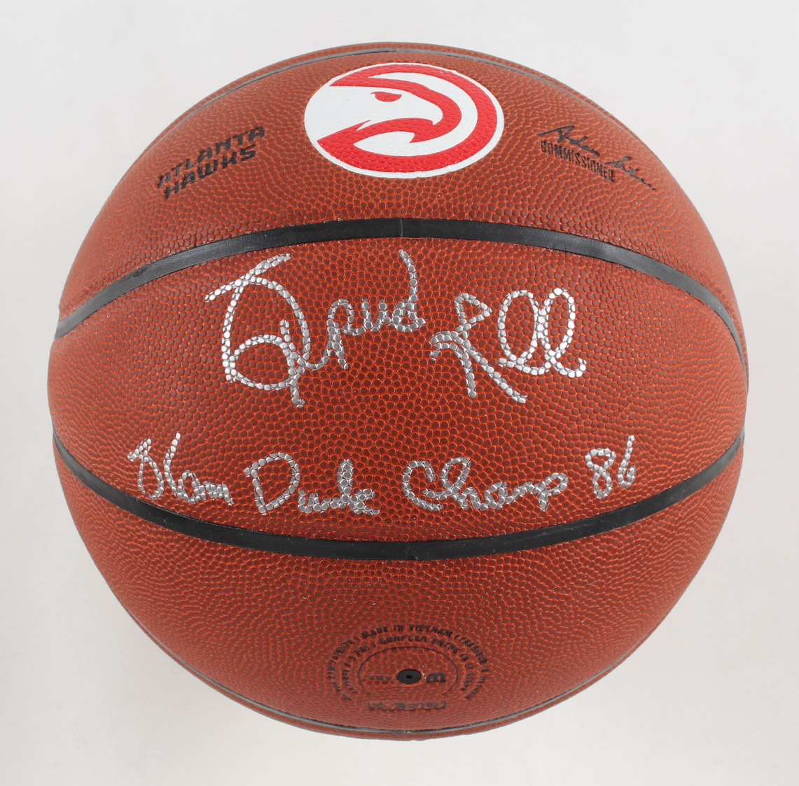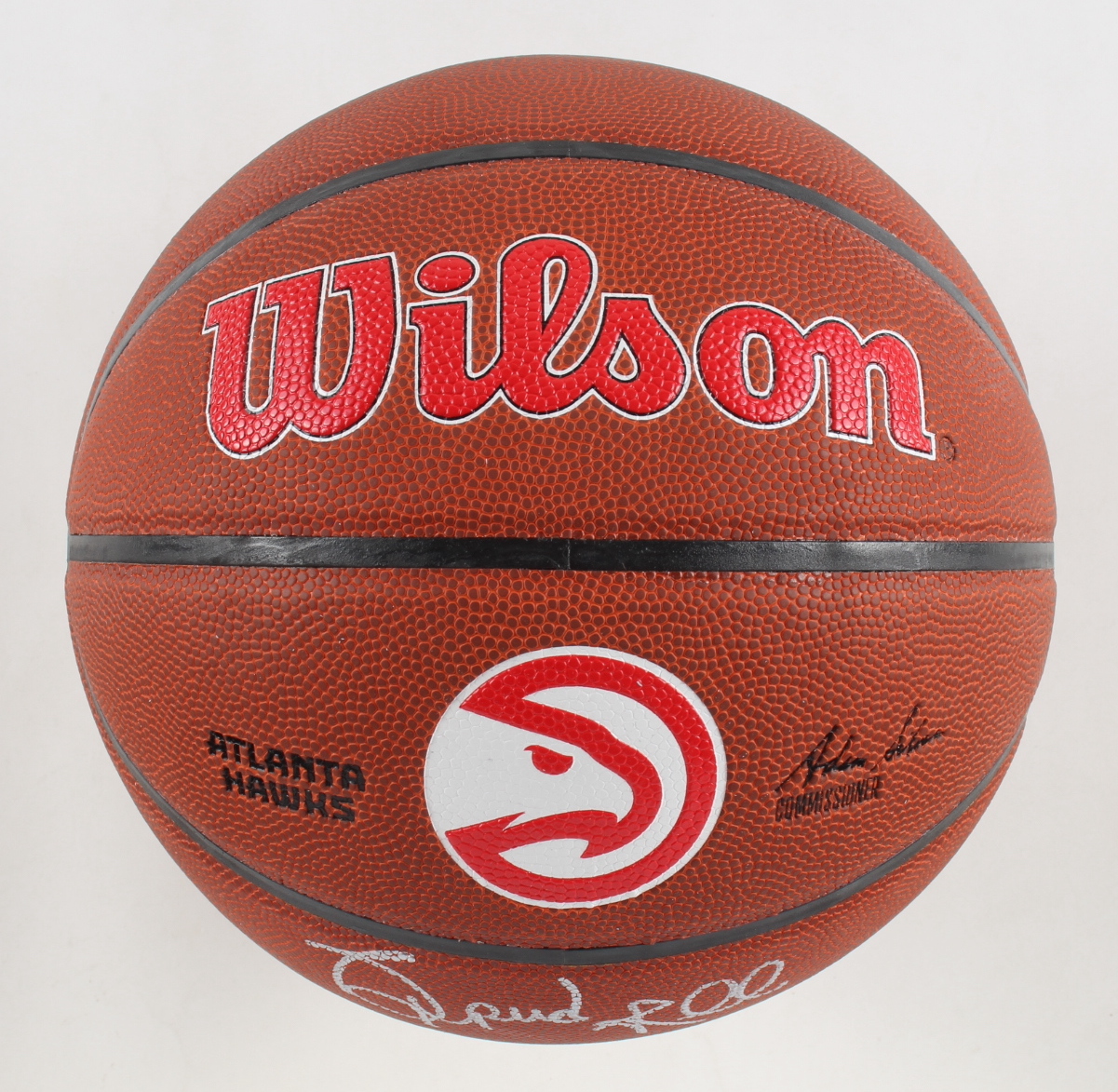 Wilson Composite Leather Atlanta Hawks logo NBA basketball. Hand-signed and inscribed by Spud Webb.