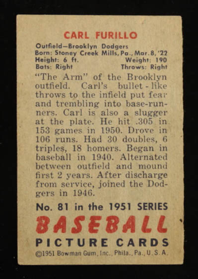 Carl Furillo 1951 Bowman #81