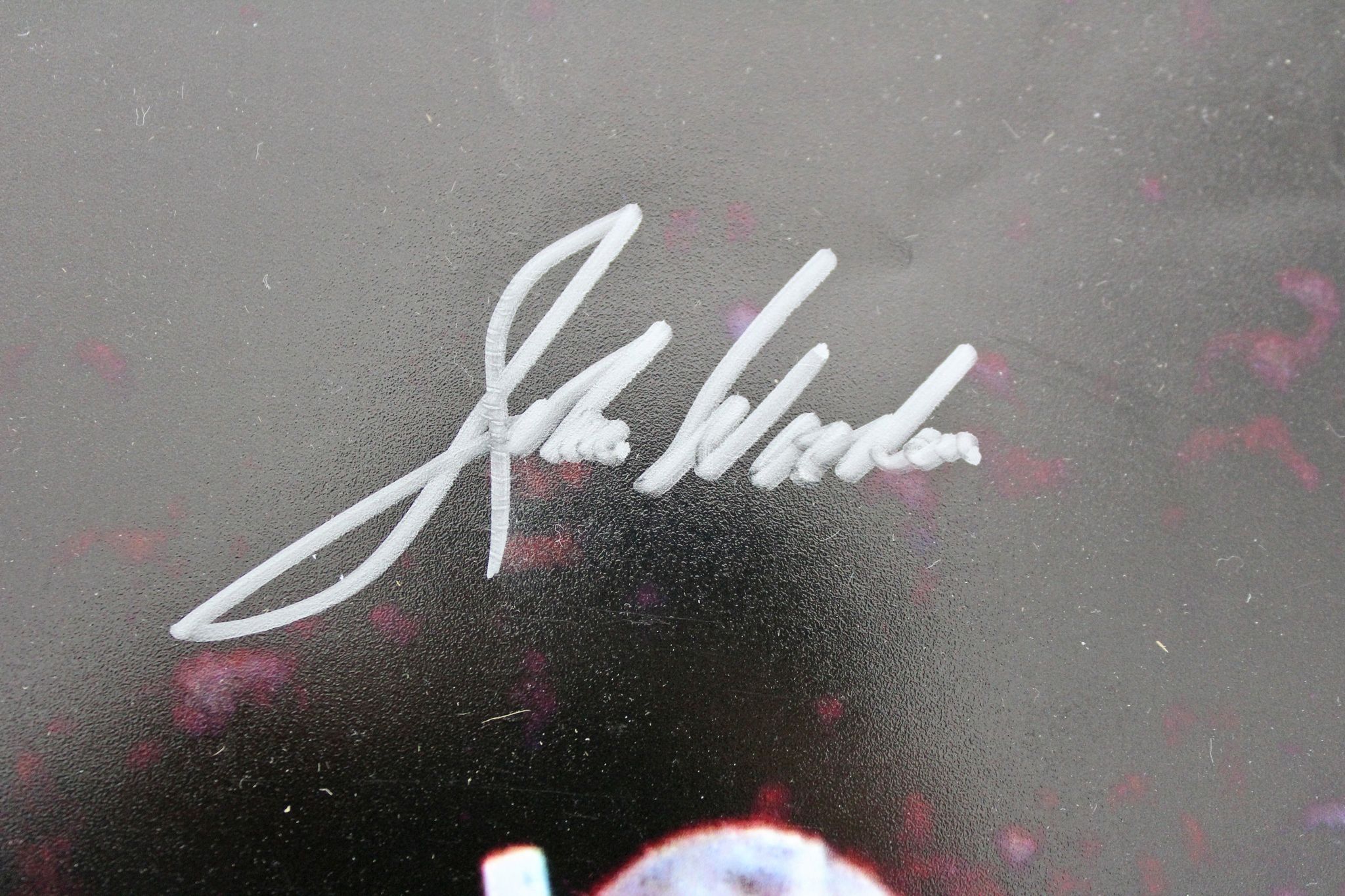 Photo measures 16" x 20" in size. Hand-signed and inscribed by John Wooden (D. 2010, HOF). Please note, photo has multiple spots with imperfections.