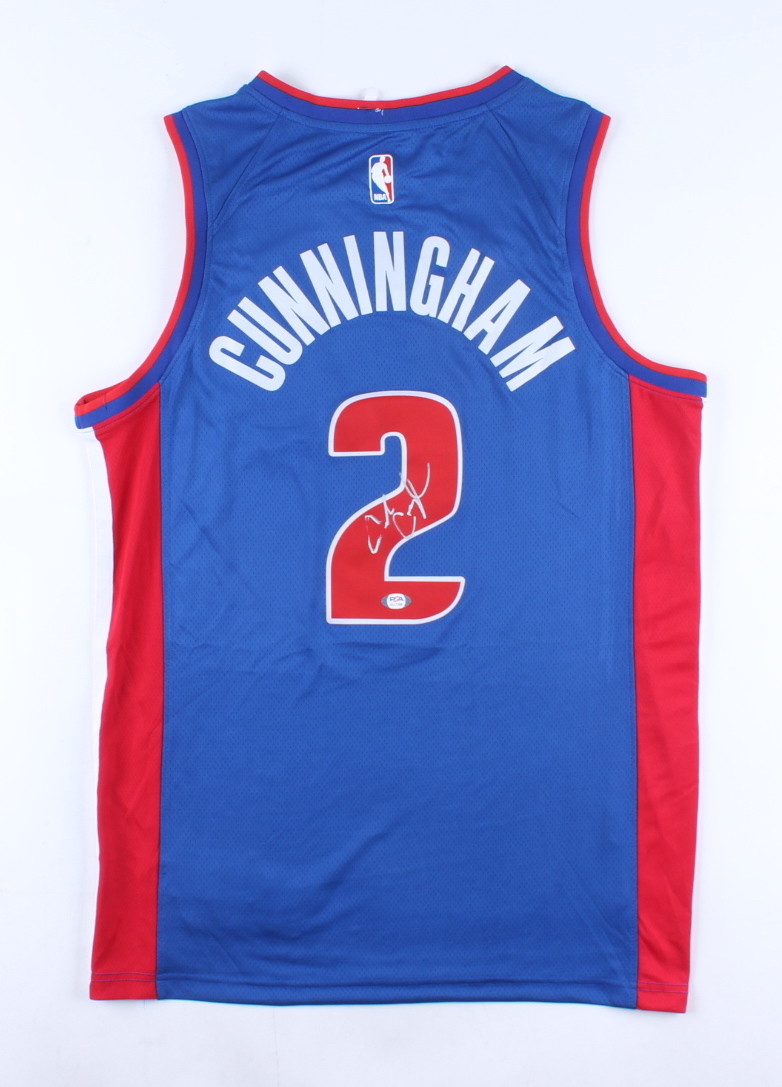 Nike on-court style jersey. Everything is printed on. Size L. Hand-signed by Cade Cunningham.