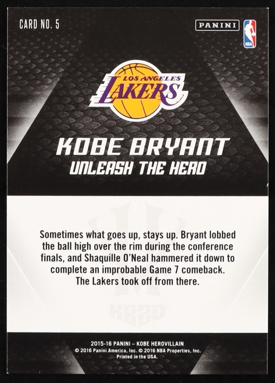 Kobe Bryant 2015-16 Panini HV KB20 Unleash the Hero #5