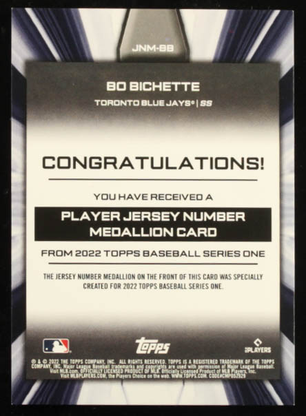 Bo Bichette 2022 Topps Commemorative Player Jersey Number Medallions #JNMBB