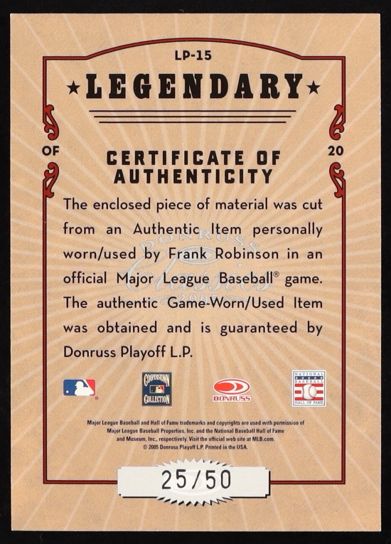 Frank Robinson 2005 Donruss Classics Legendary Lumberjacks Bat #15 #25/50