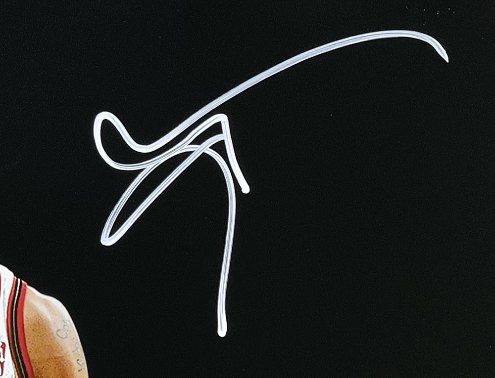 Photo measures 16" x 20" in size and has been hand-signed by Allen Iverson (Philadelphia 76ers, HOF).
