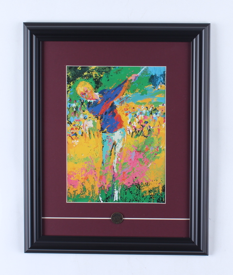 Custom frame measures 12" x 15" in size and features a LeRoy Neiman print of "Jack Nicklaus". Display also features a PGA Charter Members pin.