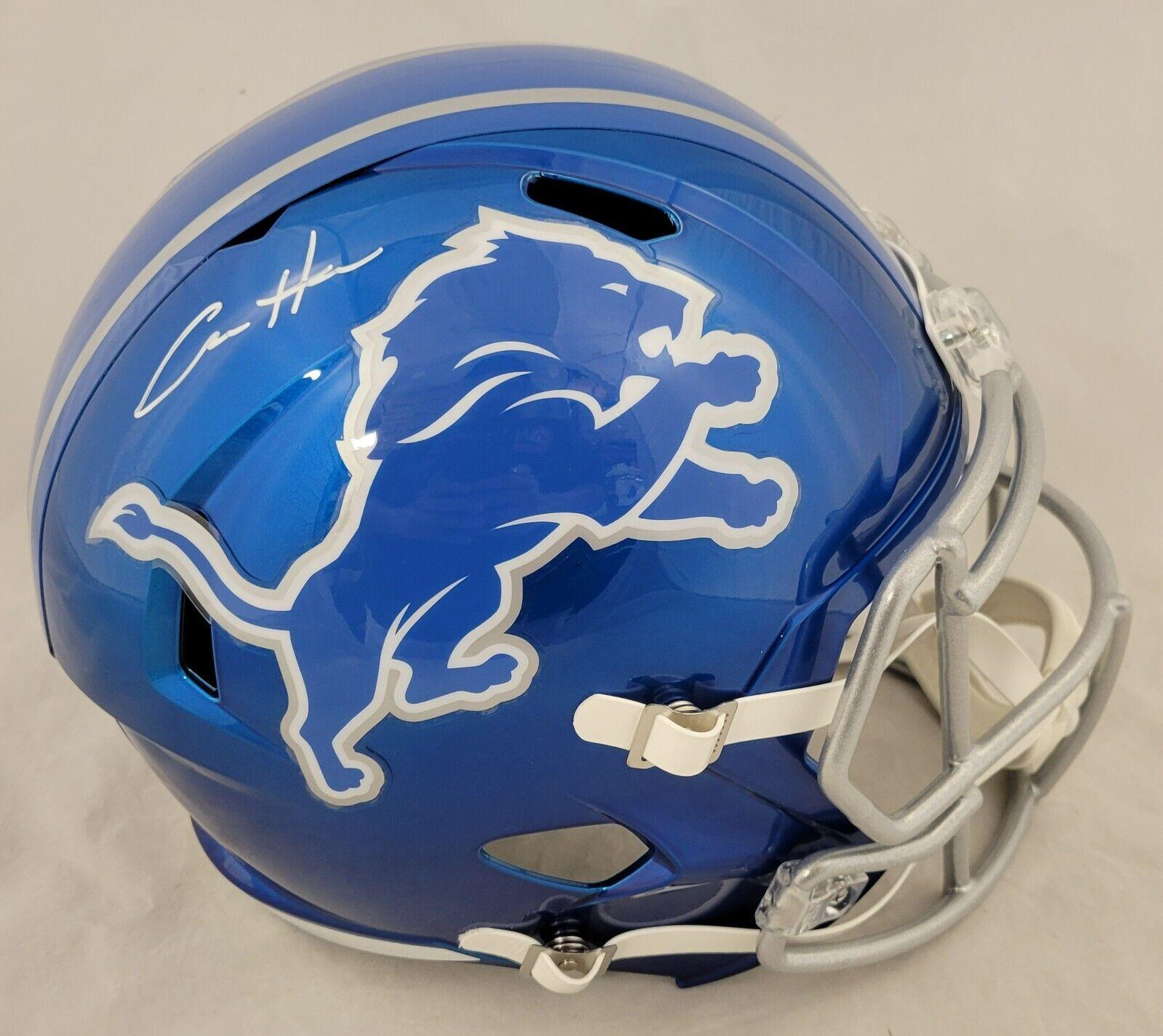 Riddell Detriot Lions Full-Size replica Flash Alternate Speed Helmet. Hand-signed by Aidan Hutchinson.