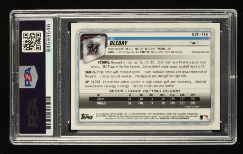 J.J. Bleday Signed 2020 Bowman Chrome Mega Box Prospects Refactors #BCP116 (PSA)