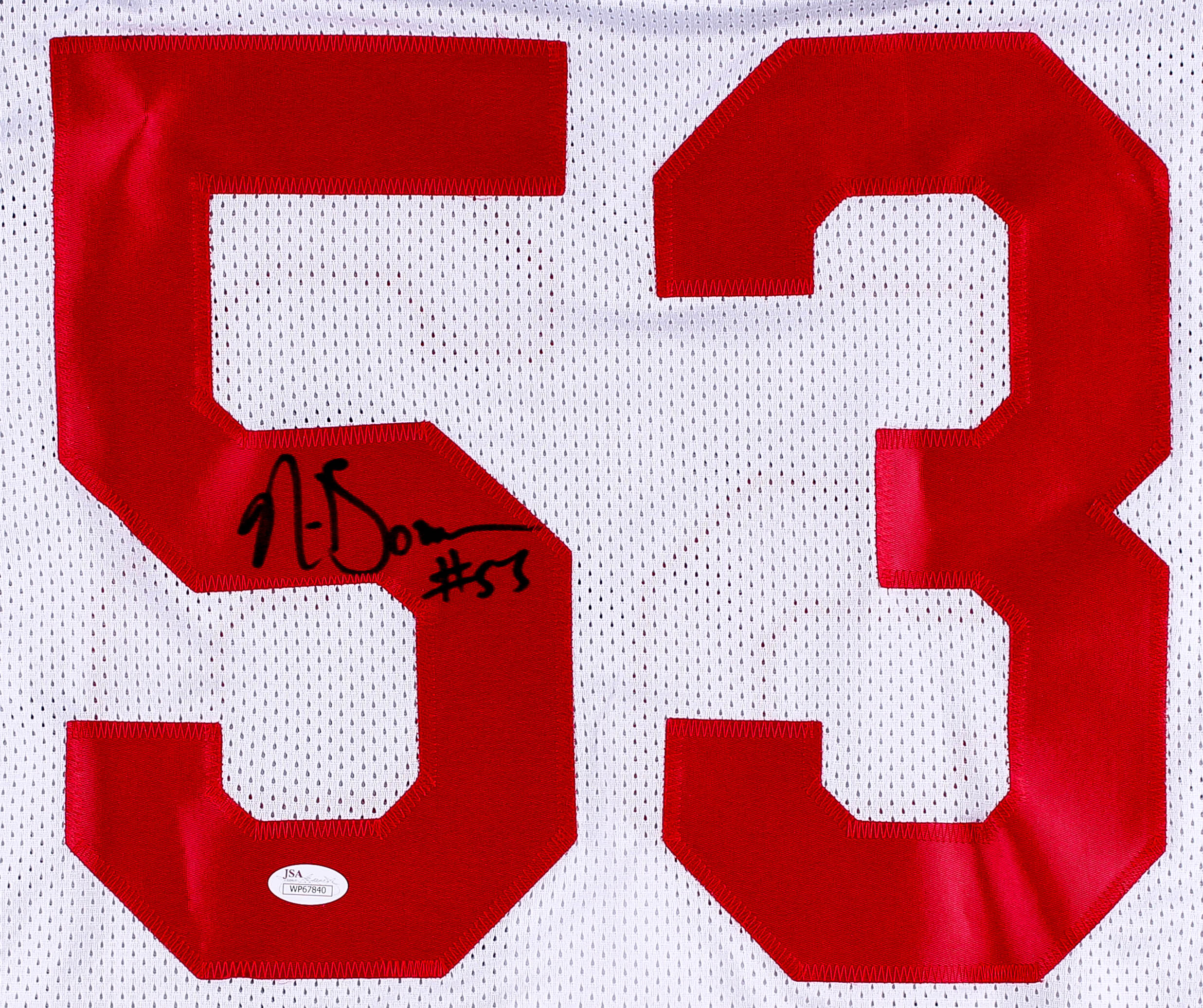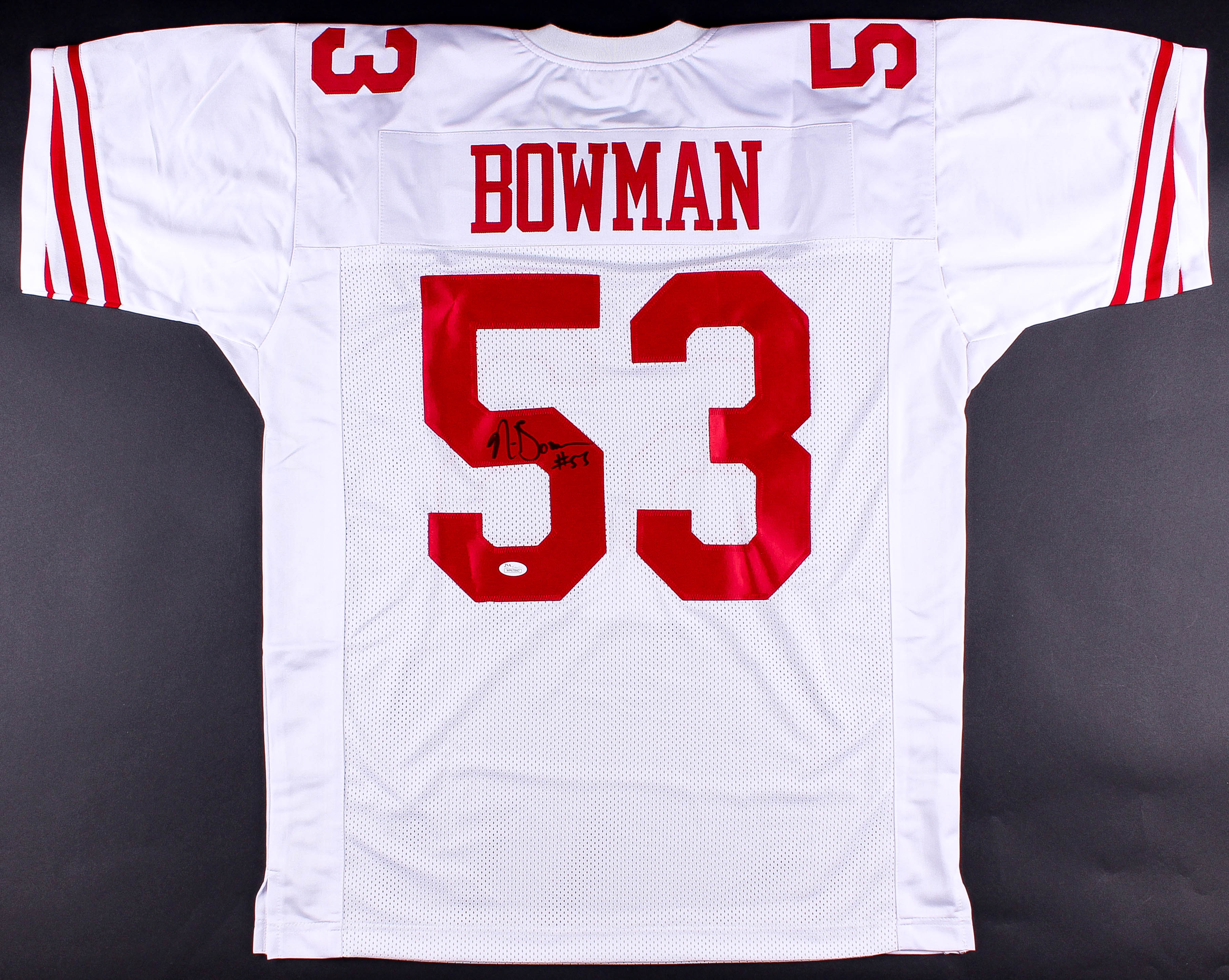 Custom on-field style jersey. Everything is sewn on, size XL. Hand-signed in black felt-tip pen by NaVorro Bowman (49ers).
