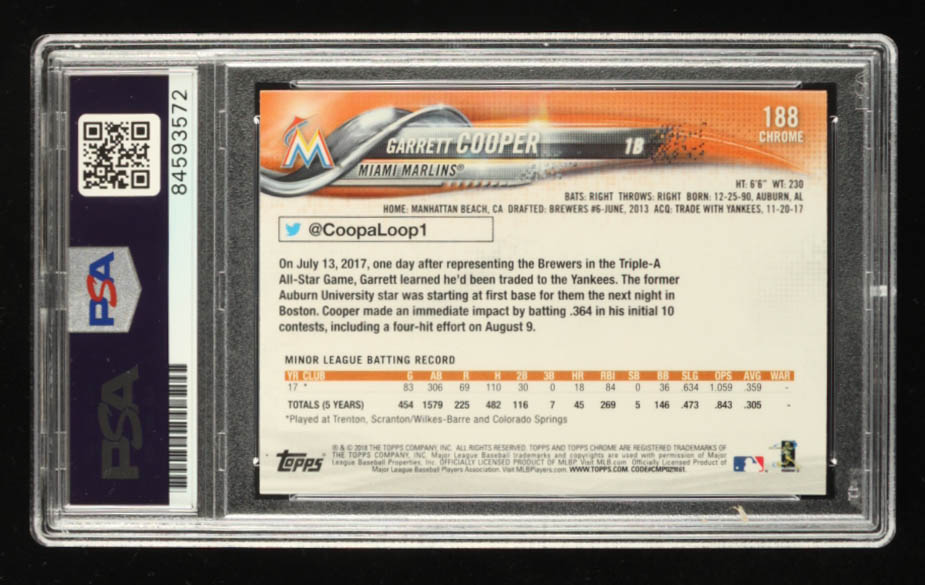 Garrett Cooper Signed 2018 Topps Chrome #188 RC (PSA)