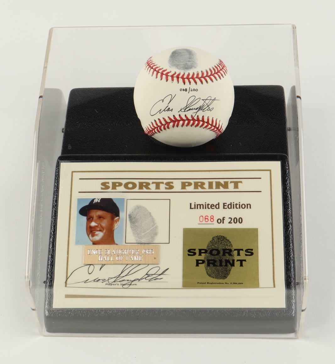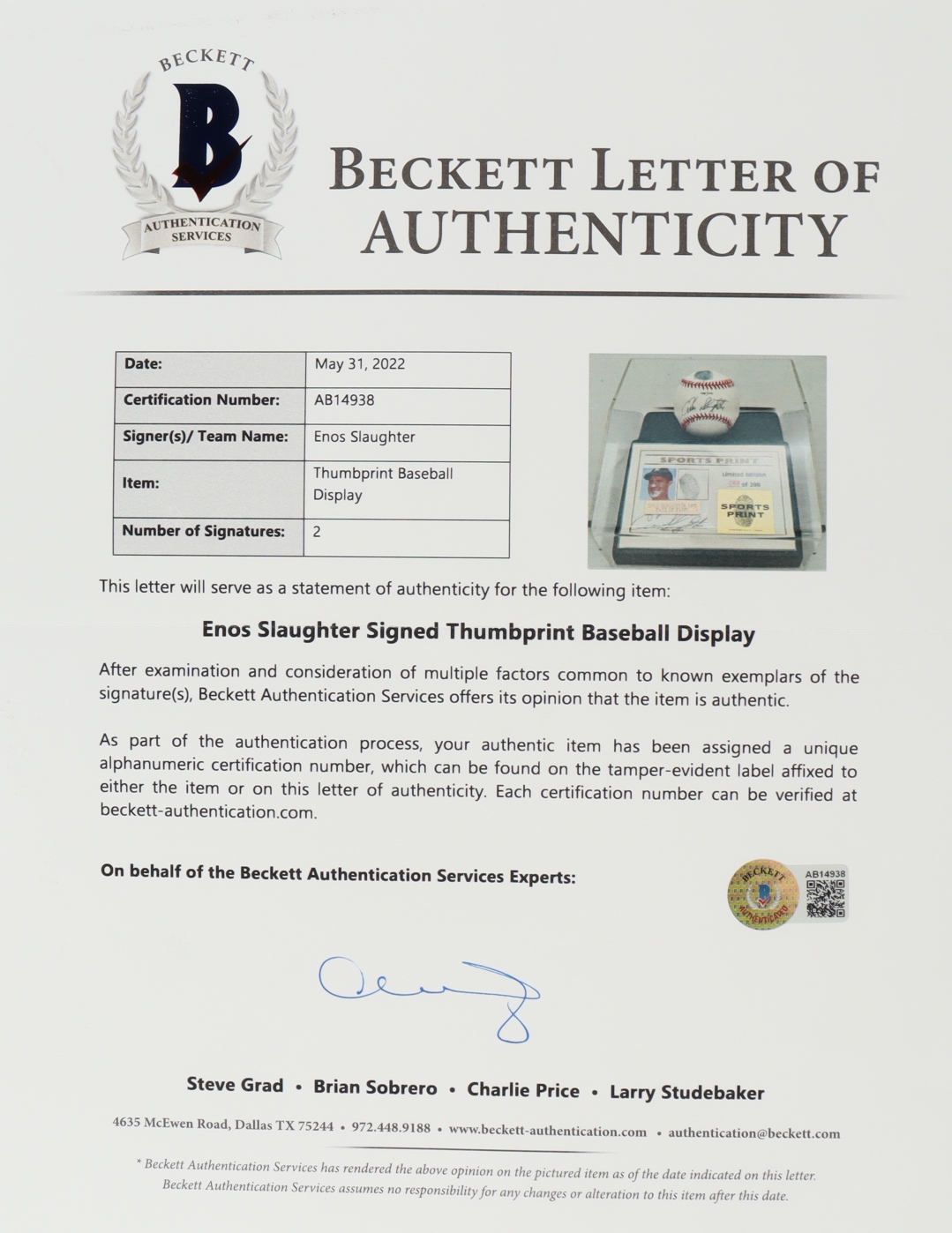 Enos Slaughter Signed LE ONL Baseball with Thumbprint With Display Case (Beckett)