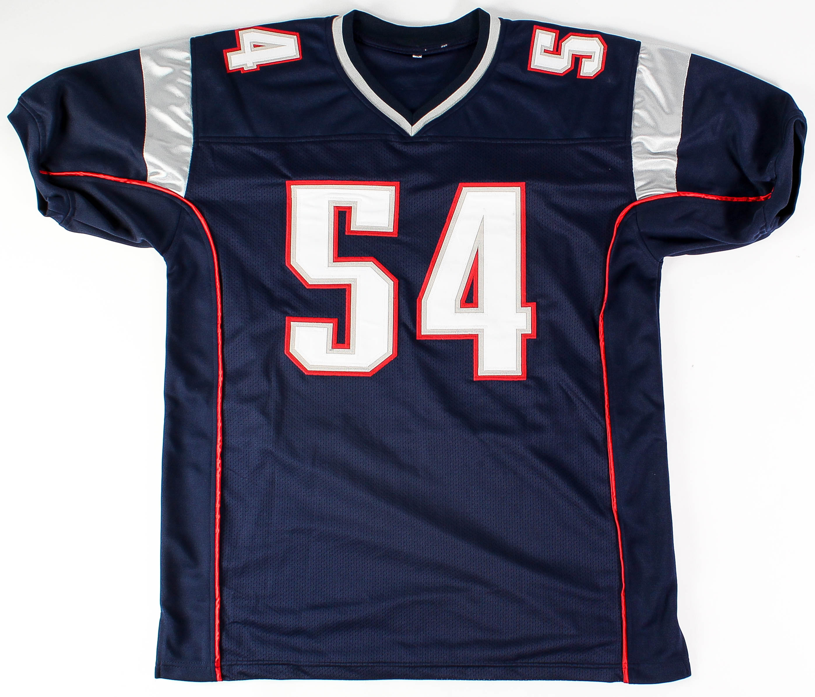 Custom on-field style jersey. Everything is sewn on, size XL. Hand-signed in blue felt-pen by Tedy Bruschi.