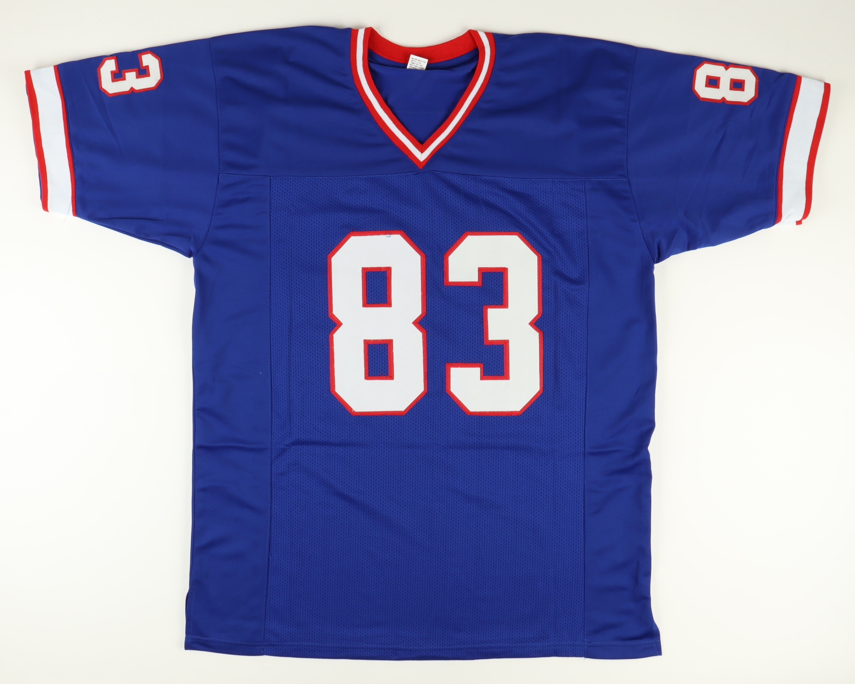 Custom on-field style jersey. Everything sewn on, size XL. Hand-signed by Andre Reed (HOF).