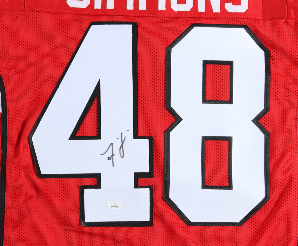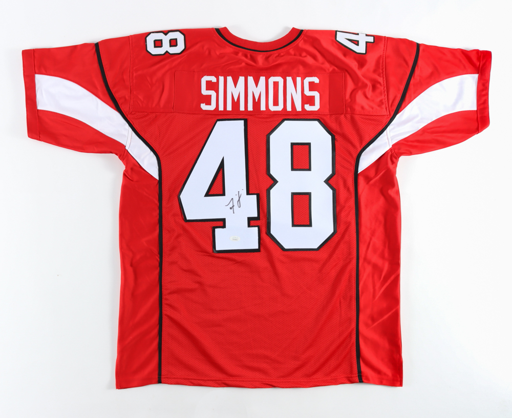 Custom on-field style jersey. Everything is sewn on, size XL. Hand-signed by Isaiah Simmons.