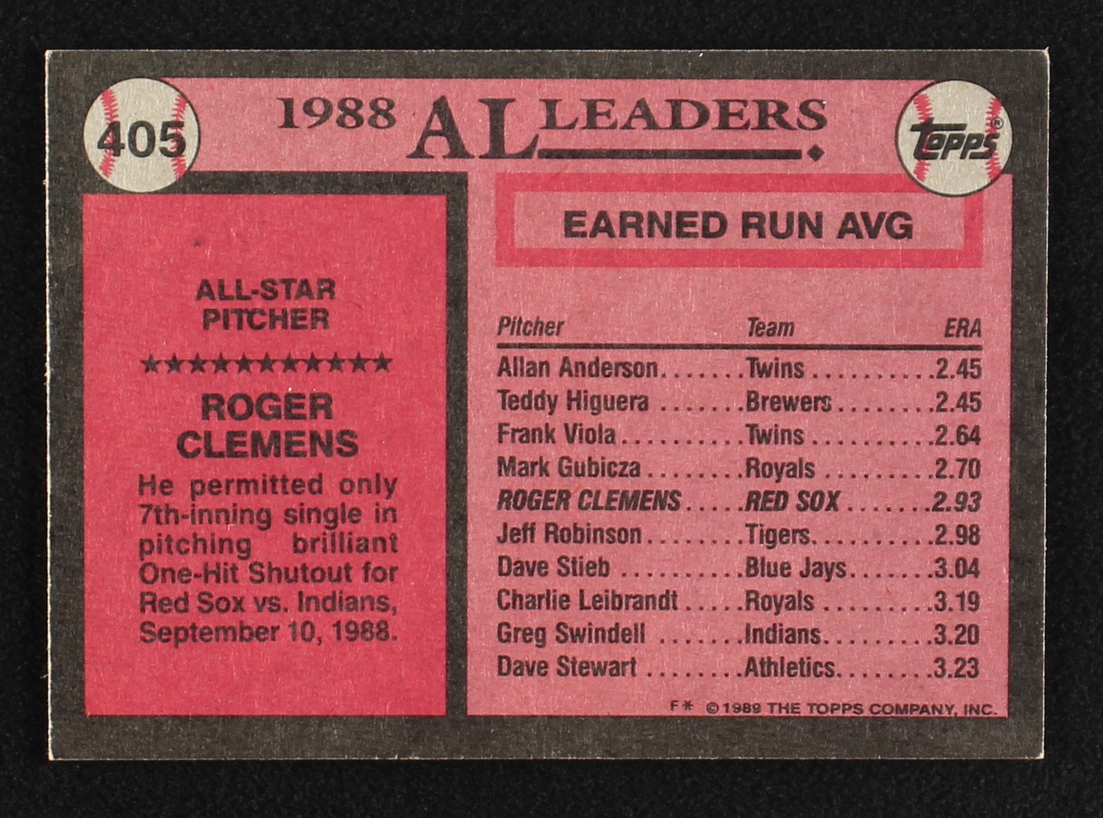 Roger Clemens 1989 Topps #405 AS