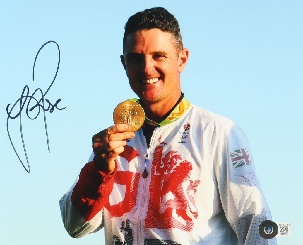 The photo measures 8" x 10" in size and has been hand-signed by Justin Rose.