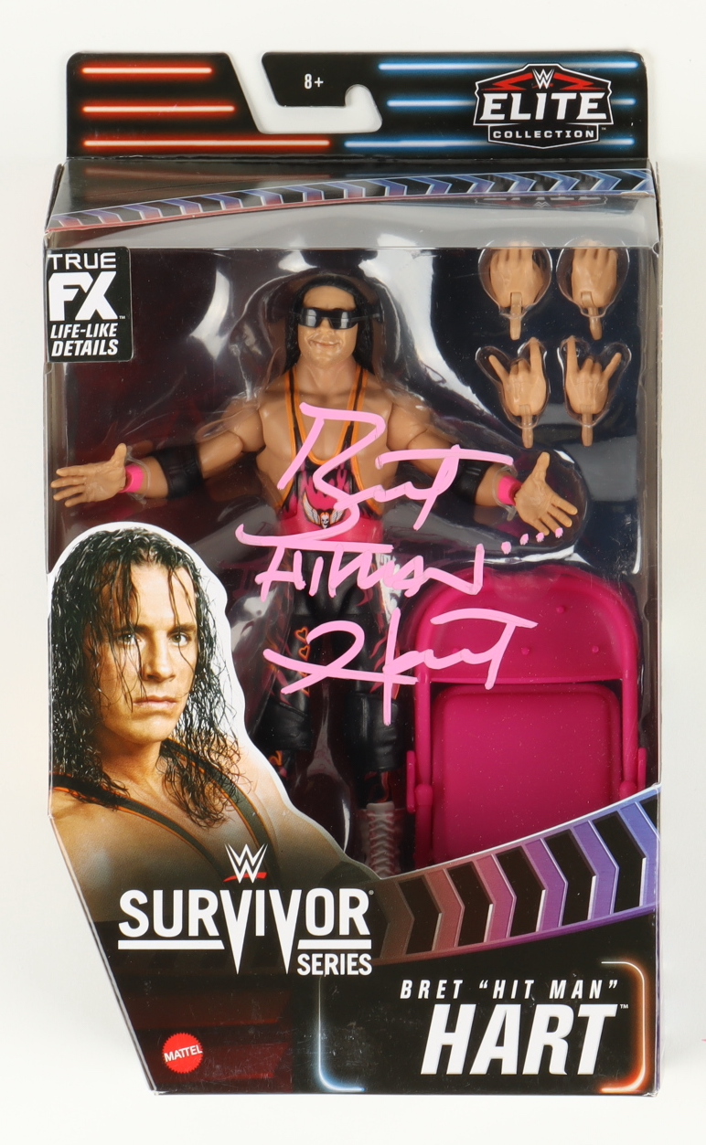 Bret Hart Signed WWE Elite Collection: Survivor Series Action Figure with Original Packaging Inscribed "Hitman...." (Beckett)