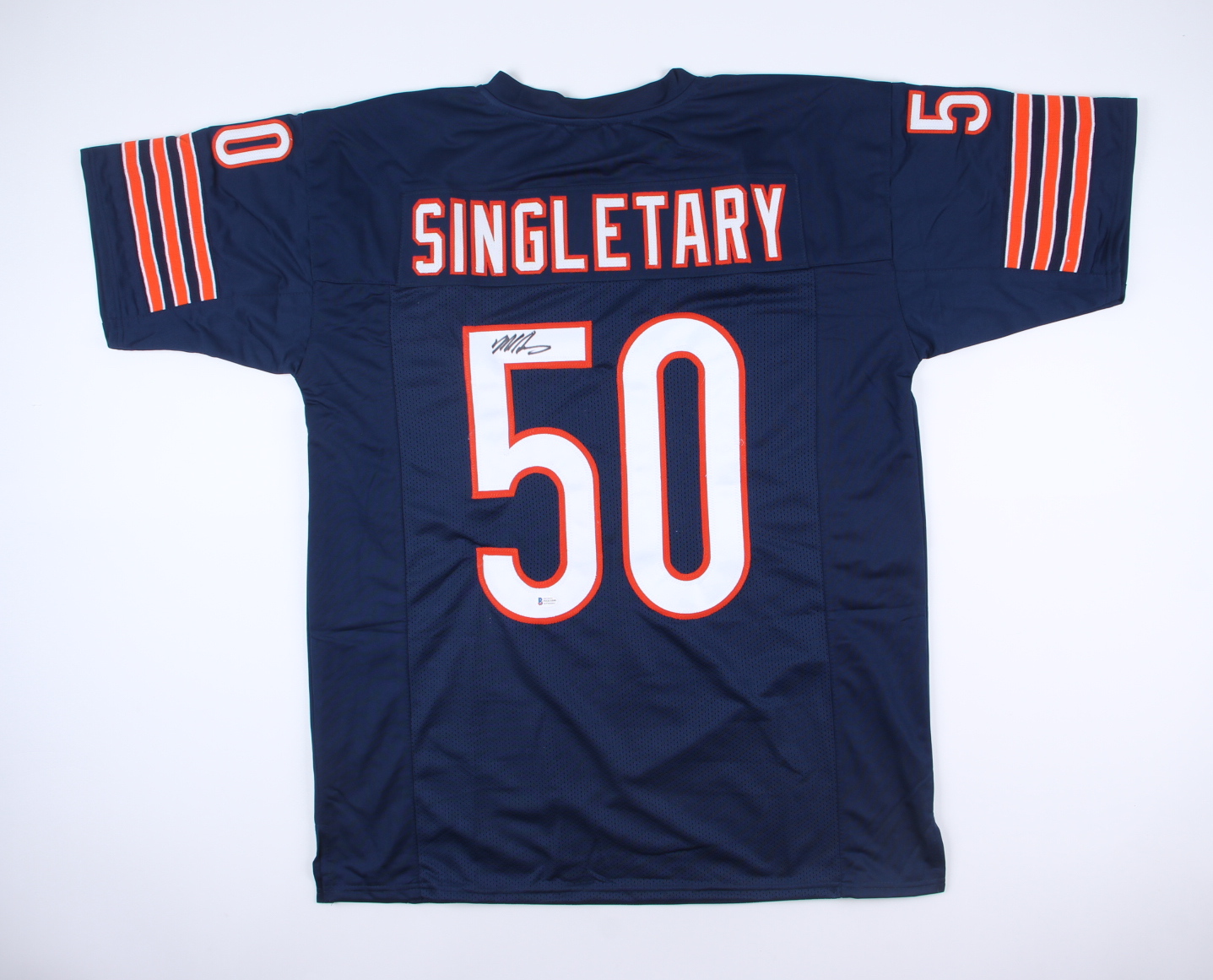 Custom on-field style jersey. Everything is sewn on, size XL. Hand-signed by Mike Singletary (HOF).