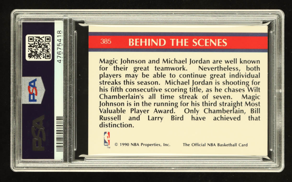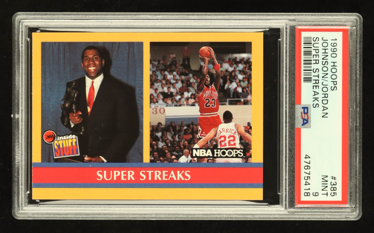 Magic Johnson / Michael Jordan 1990-91 Hoops #385 Super Streaks / Stay In School (PSA 9)
