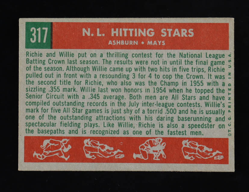 Willie Mays / Richie Ashburn 1959 Topps #317 NL Hitting Kings