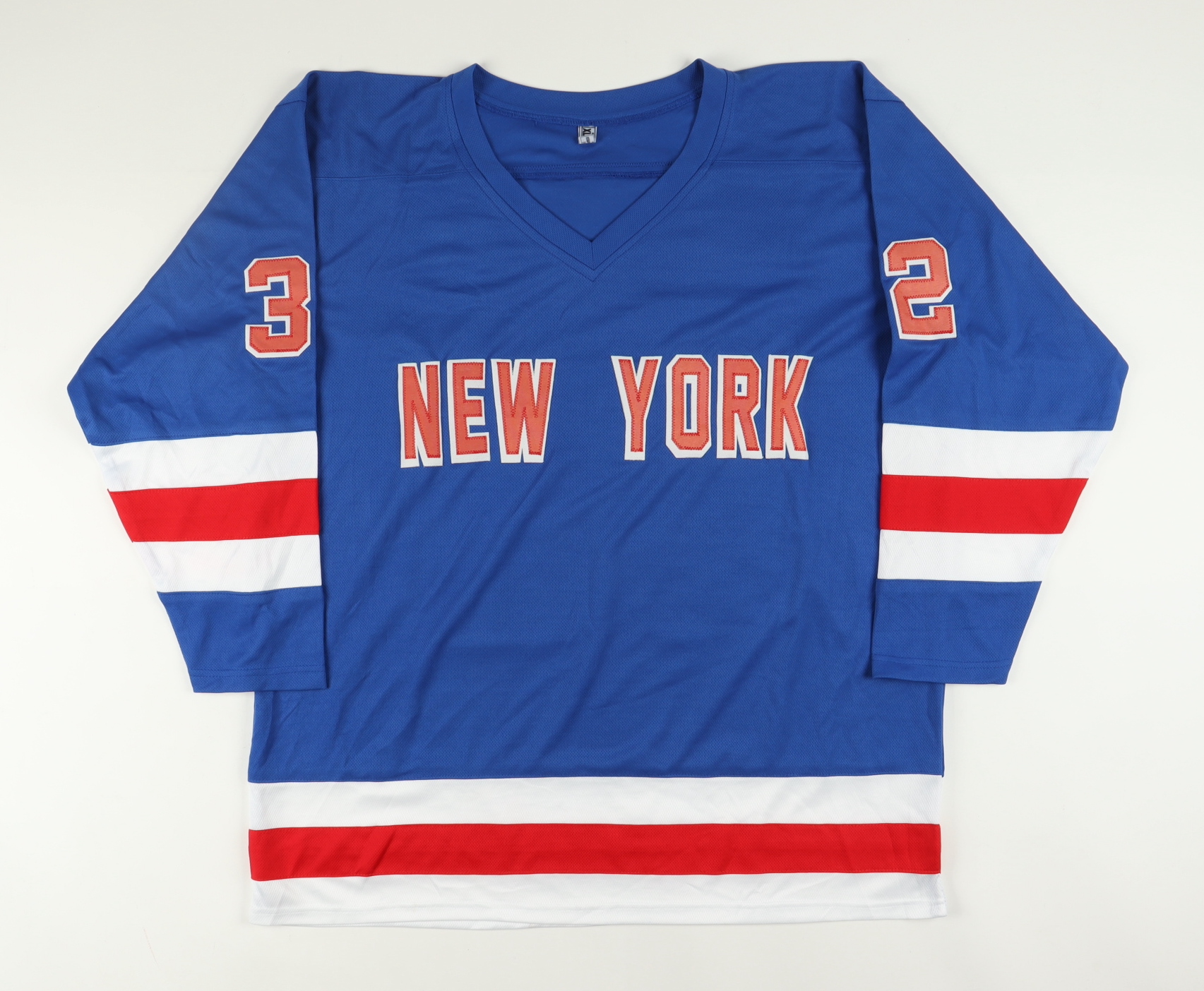 Custom on-ice style jersey. Everything is sewn on, size XL. Hand-signed and inscribed by Stephane Matteau.