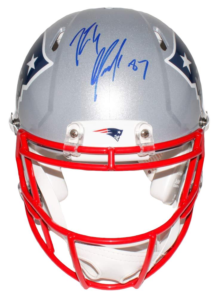 Riddell New England Patriots full-size authentic on-field proline speed helmet. Hand-signed by Rob Gronkowski.